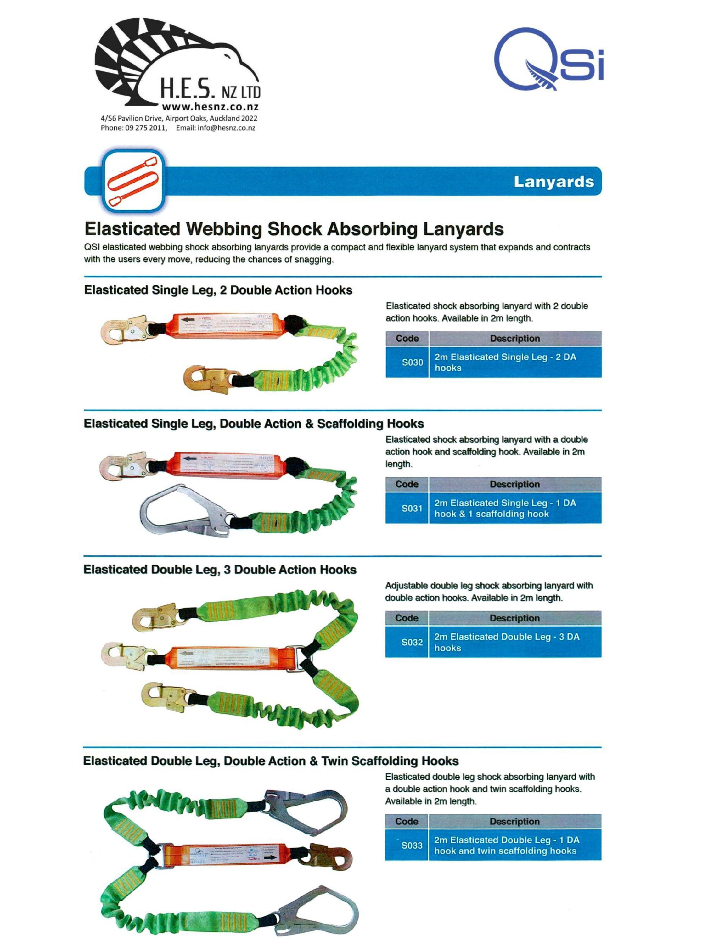 QSI Elasticated 2m Single Leg Lanyard c/w Scaffold Hook