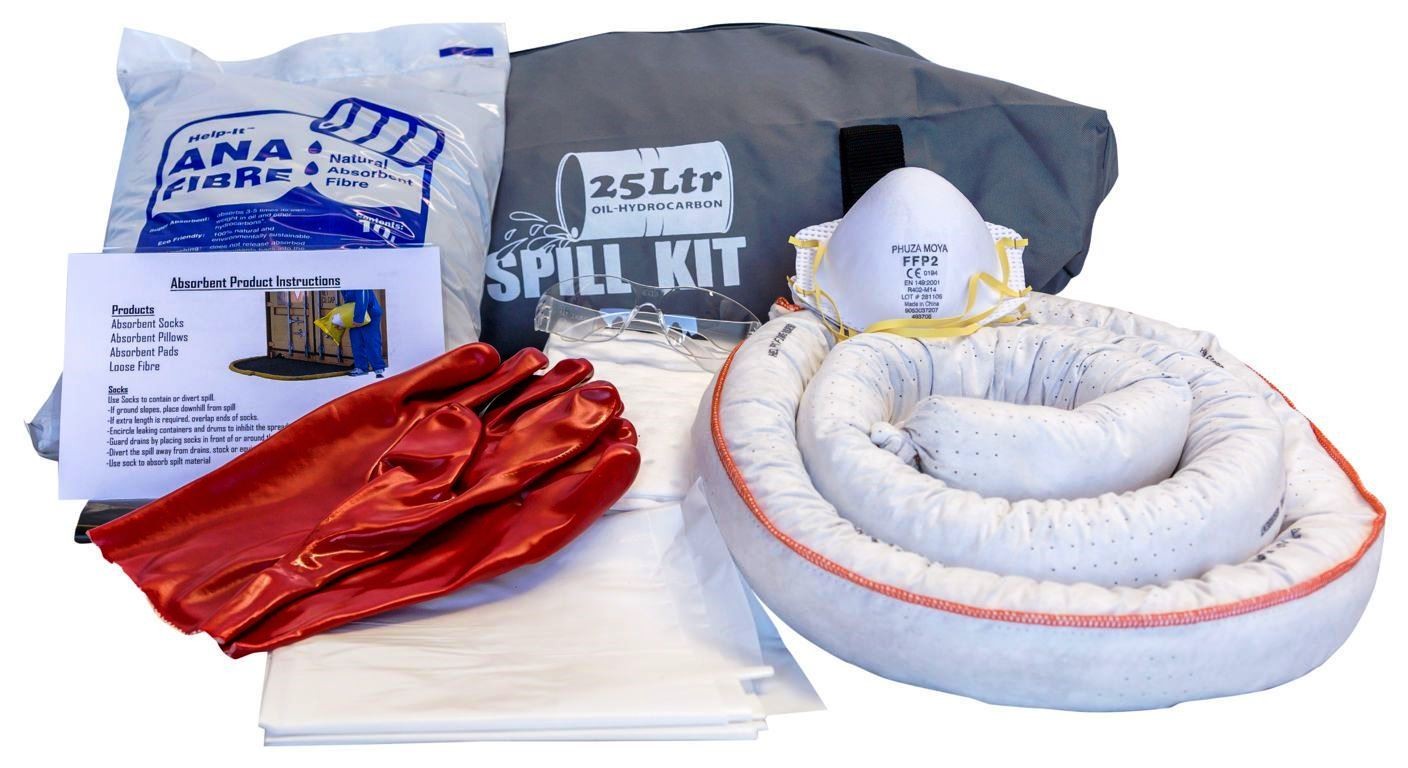 This kit is designed to absorb spills up to 20 litres. It is compact enough