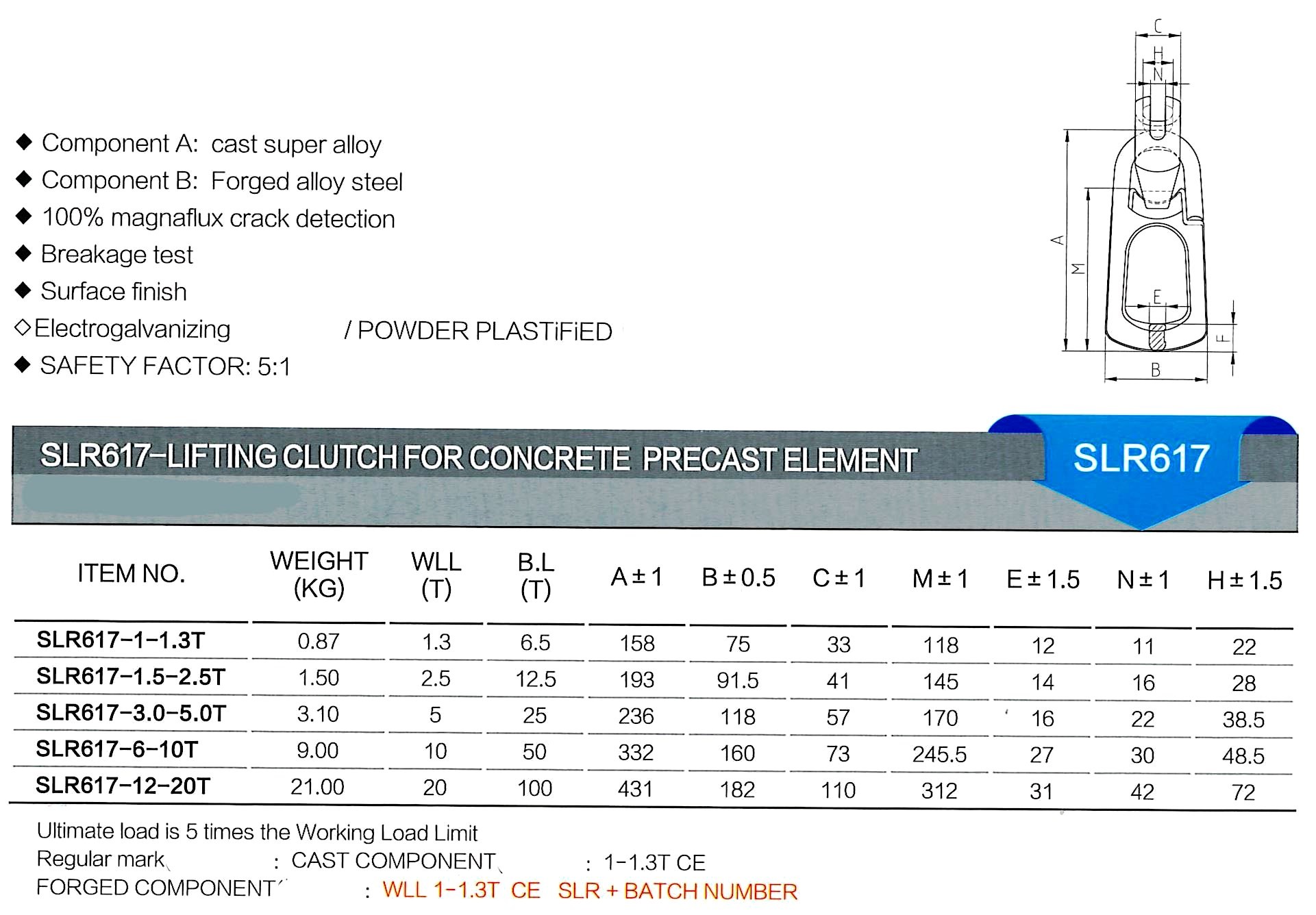 5.0T Clutch Minimum Fit: 16mm Connector, 10mm Sling or Safety Hook