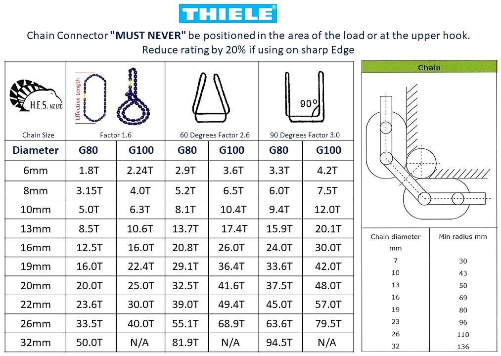 Rating MUST be reduced by 20% if the chain is in contact with sharp edge.