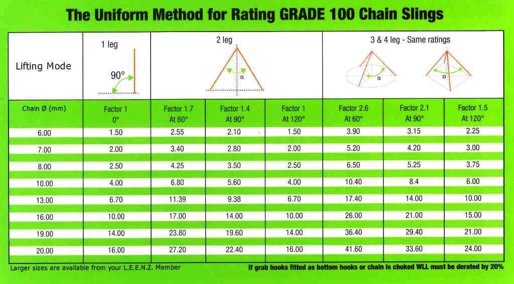 All Chain Sets are assembled in accordance with the ” NZ Department of Labour” code of practice, Manufacturer Recommendations and LEENZ guidelines and conforms with Standards EN818.4