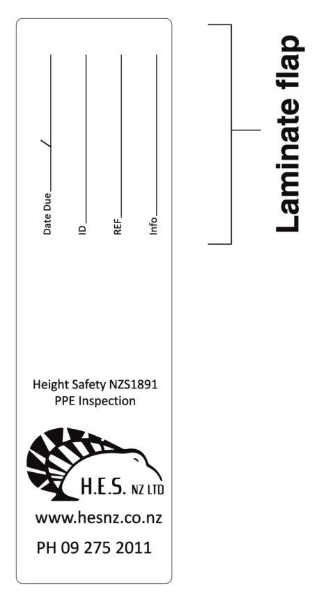 These HES NZ Inspection Tags are fitted to Height Safety Harnesses and Lanyards showing the following information..