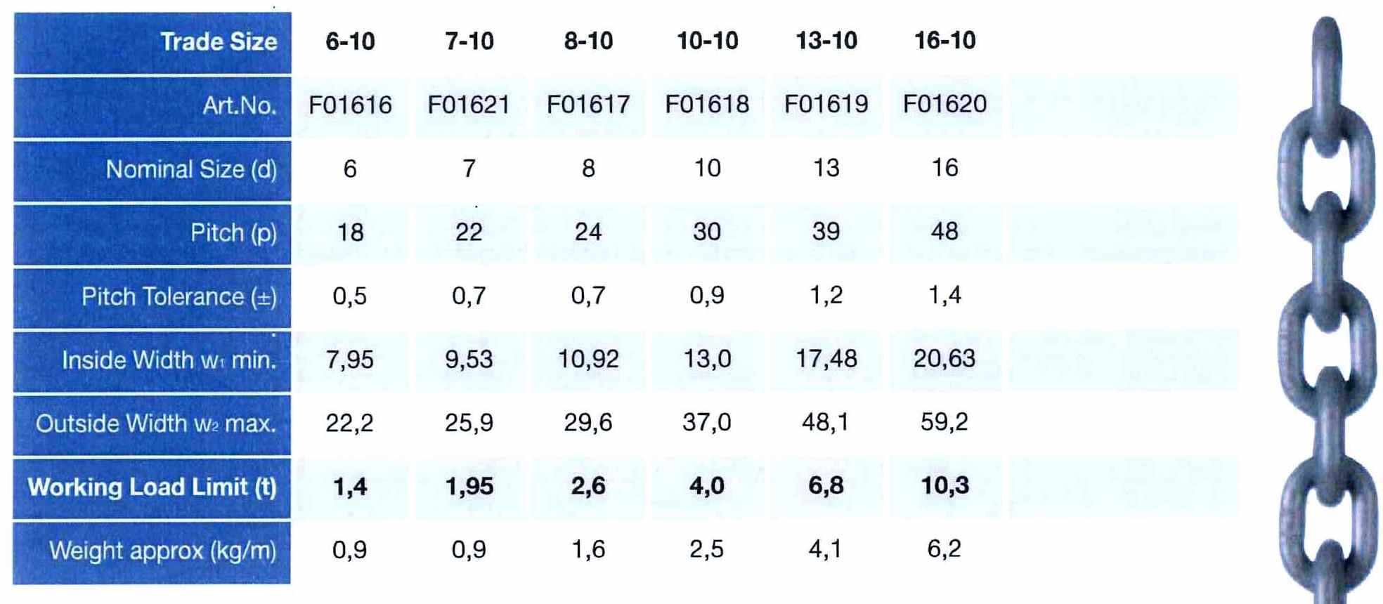 NOTE: All chain is cut to leg length “MINUS” one link. We only sell per “FULL” metre.