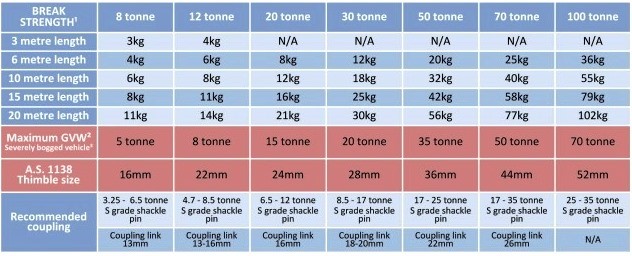 Recreational 4WD and light commercial vehicles use the high elasticity (20%) and robust construction for recovery and towing use.