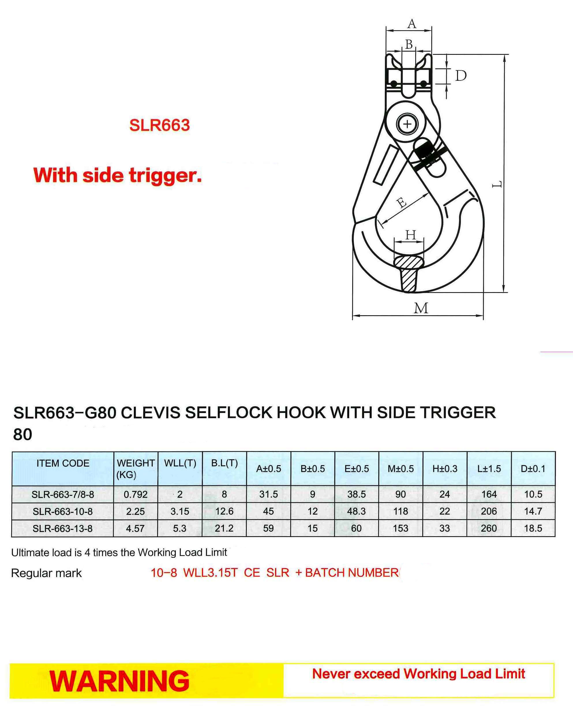 Safety Hook – SLR G80 Clevis c/w Side Trigger