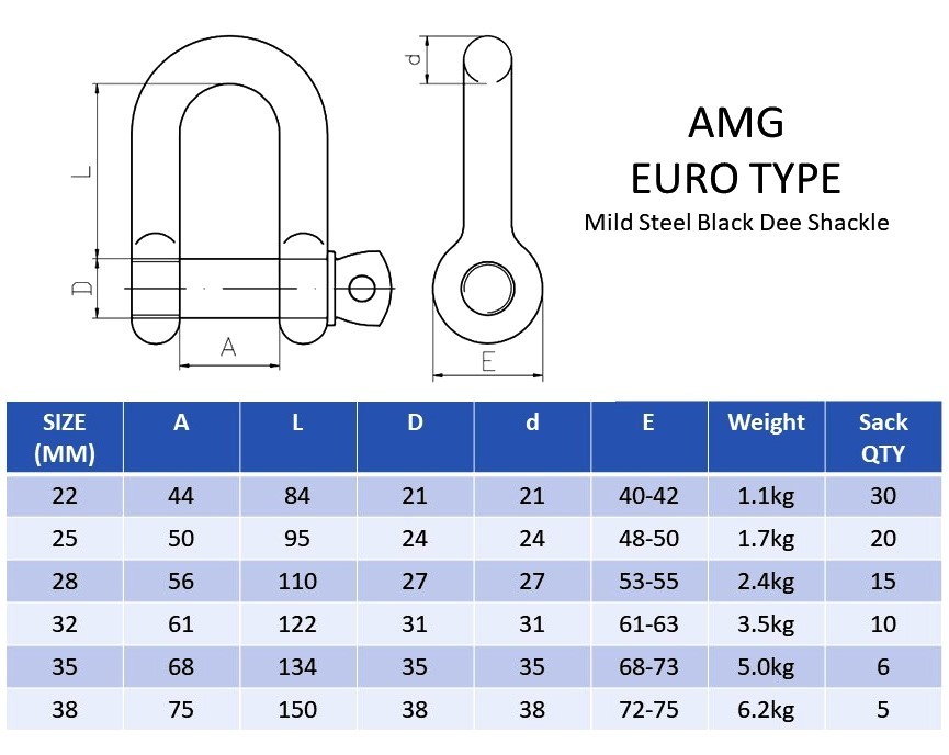 38mm Body & Pin S/C Dee Shackle – Sack of 5