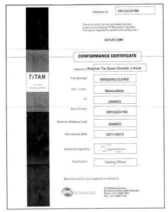 These TiTAN Tie Downs EXCEED the minimum 2:1 Safety Factor required on all components used to manufacture this item under New Zealand Standards.