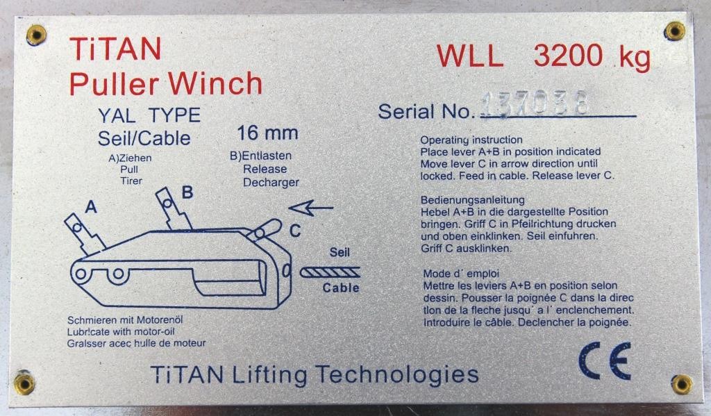 Titan YAL-Winch 3.2T Lift / 4.8T Pull c/w 20m Cable
